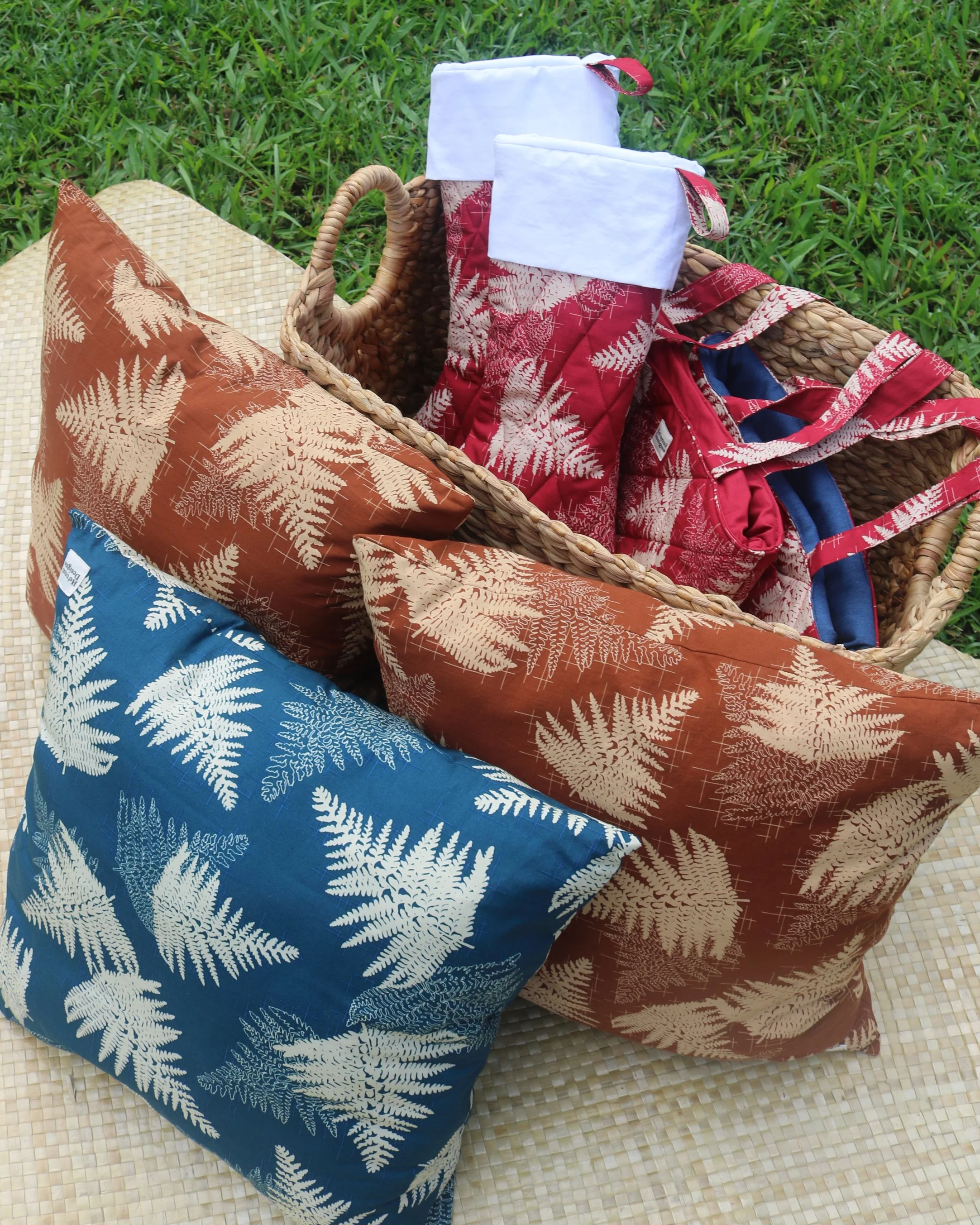 The Hilo and Hoaka totes are quilted palaka bags made for your everyday huakaʻi. The Hilo is a compact mini for essentials, while the Hoaka offers more space for books, an iPad, or all-day needs.